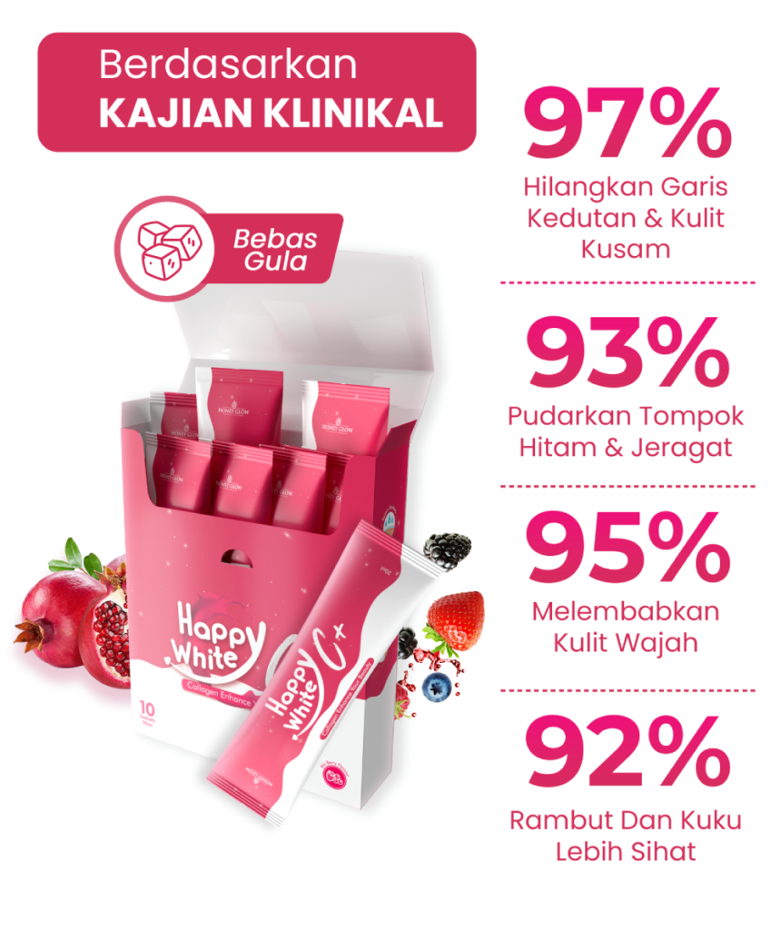 - Membaiki kolagen kulit & serat protein elastin untuk meningkatkan keanjalan kulit wajah